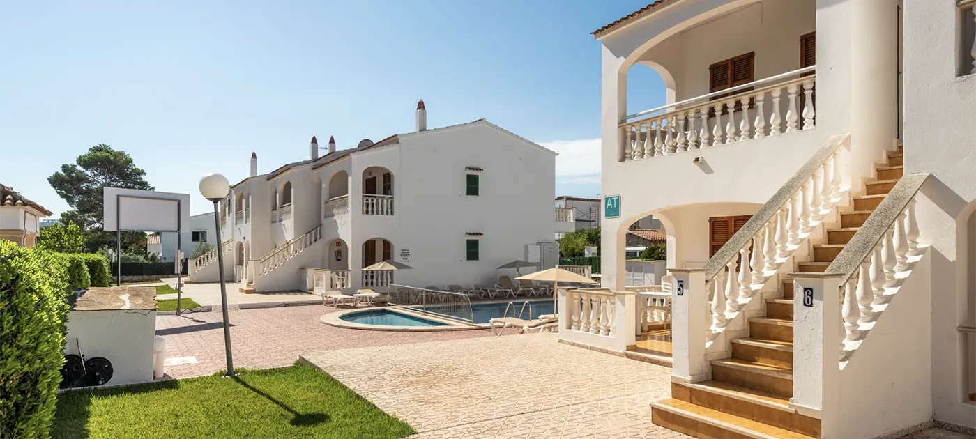 But if we’re talking about Cala Blanca — that small U-shaped cove on the west coast of the island, just five kilometres from Ciutadella, with its white sand and impossibly clear water — the longer answer has quite a lot to say in favour of apartments with a pool.