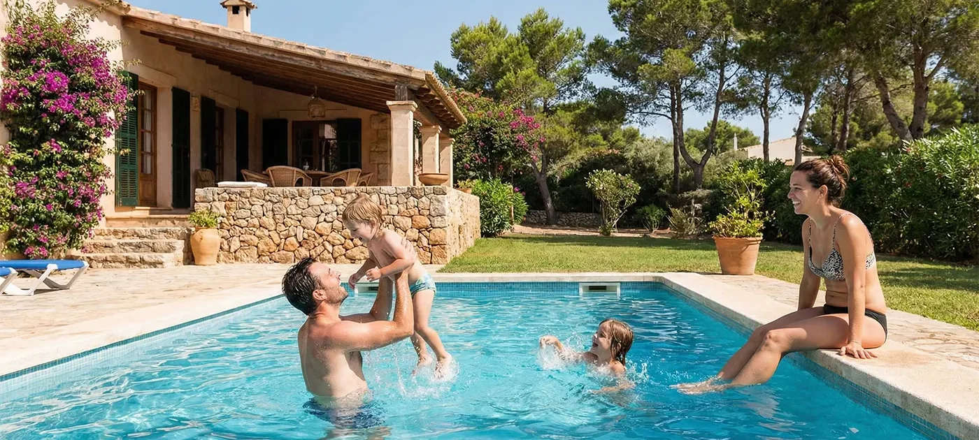 In Cala Blanca, a simple routine works perfectly: relaxed breakfast, beach bag ready, back home for quick showers and a family lunch.