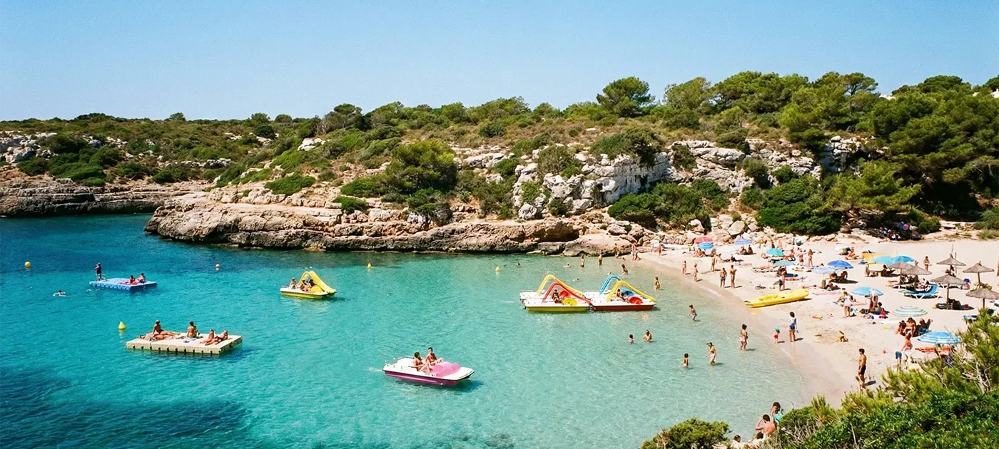 Cala Blanca is located in the south-west of Menorca, very close to Ciutadella, and you can really feel it: there are services, supermarkets, pleasant areas to stroll around, and an atmosphere that’s ideal for families.