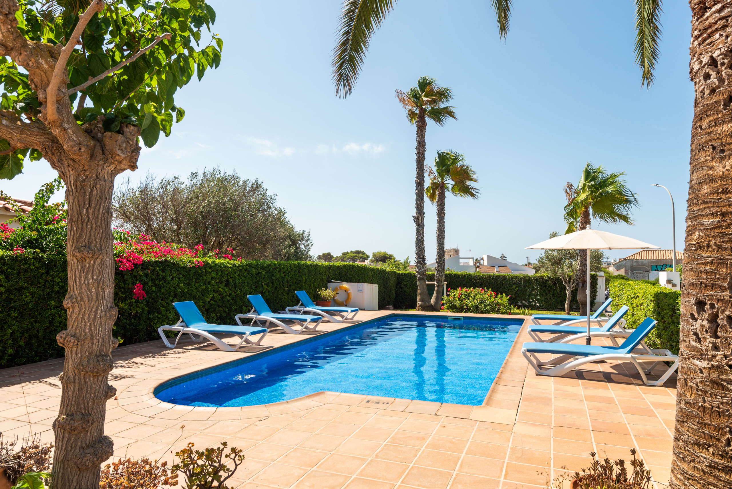 Tana !! Villa with a large plot, to feel much clearer. The pool area is surrounded by plants and vegetation, and just 10 meters away, a large built-in barbecue with a terrace, where you will spend a lot of time there. Very complete interior, with air conditioning, large kitchen, free Wi-Fi, tv with foreign channels and much more. In Tana, you will have a super comfortable vacation and one step away from the beaches of Calen Blanes, a wide gastronomic range, aqua park, our famous "camí de cavalls" and endless services for you to enjoy. Just 5 km from Ciutadella, an area that you cannot miss, take a walk through the center of Ciutadella and even the port, so magical that we have. Enjoy it to the fullest and live your best holidays.